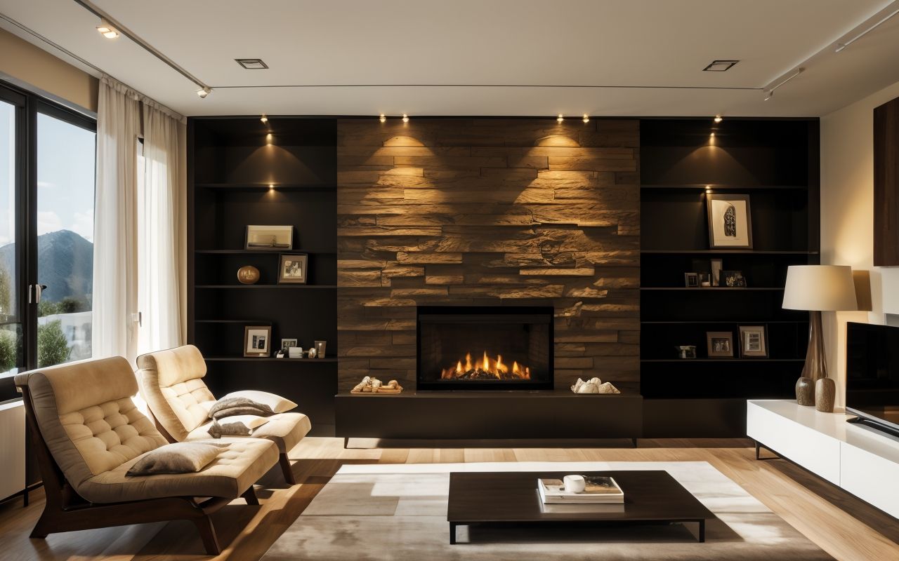 Дерево и камень в гостиной: гармония тепла и прочности