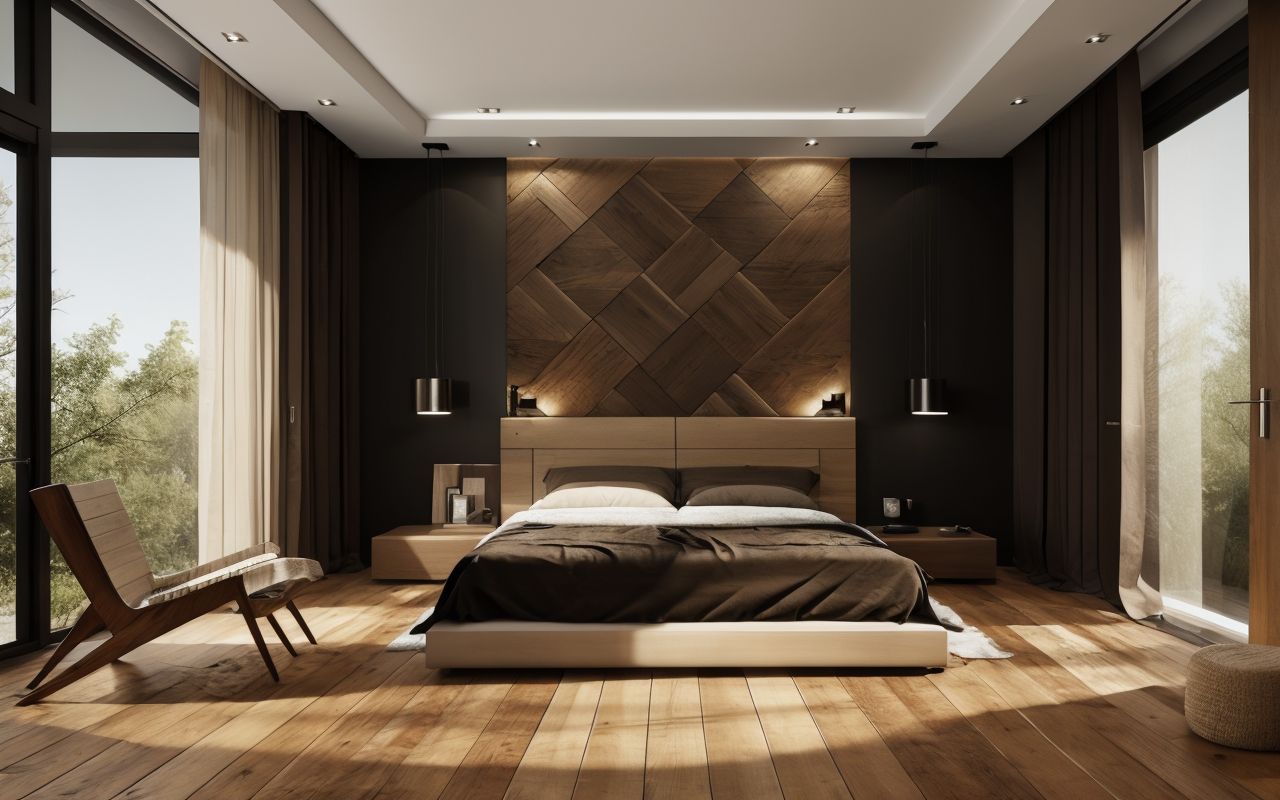 Освещение в интерьере должно подчеркивать достоинства текстур: теплый рассеянный свет выделяет древесные волокна, а направленное освещение создает игру светотени, придавая поверхности объема. Правильное освещение — важная часть создания баланса.