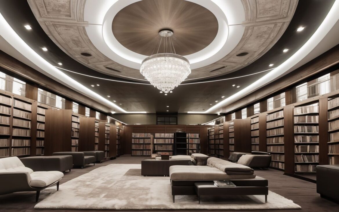 Декоративные элементы и освещение играют ключевую роль в создании уютной атмосферы в библиотеке. Варианты оформления потолка с учетом этих аспектов: