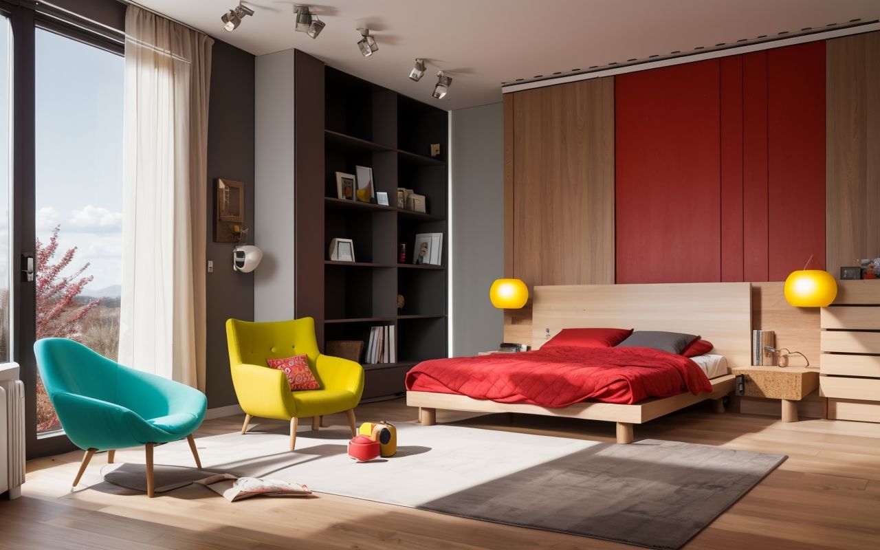 - Для более яркого интерьера можно комбинировать пробку с яркими элементами декора.